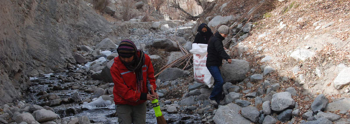 In the last decade, Ladakh has witnessed a huge surge in tourism, and the rapid growth in visitor numbers has given rise to the problem of uncontrolled and prolific waste generation. Trekking trails and villages are increasingly becoming victims of litter accumulation. SLC-IT and its partners urge tourists and tour operators to carry their trash back with them to places with facilities for recycling and proper disposal. In the meantime, SLC-IT has designed an eco-action program to help villages manage this problem. We have started constructing masonry bins that facilitate ease of proper disposal and recycling by sorting out garbage at source. We also organize trash-cleaning drives, involving villagers, school children and teachers in the clearing of trash from trails and villages.