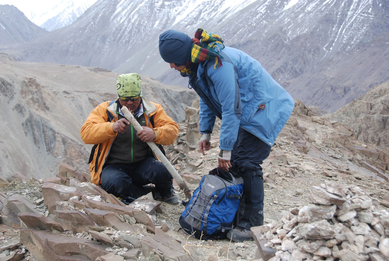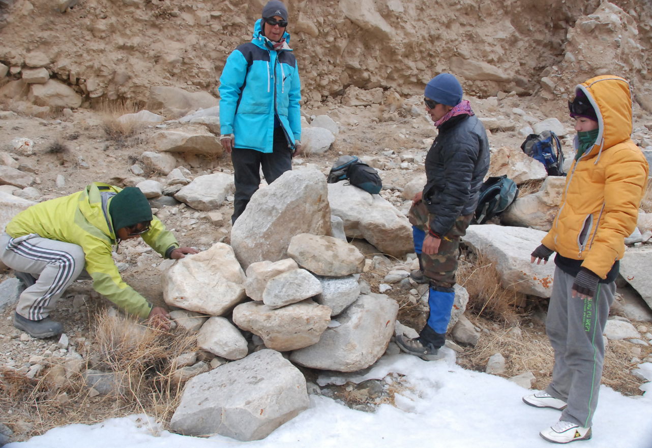 The snow leopard is a very elusive species, so much so that it is referred to as the ‘grey ghost’. This elusiveness and the inaccessibility of its habitat make it very difficult to estimate its population. Scientists have used various techniques to study this enigmatic species in the wild. Conventionally, a sign survey was the primary method for determining its distribution and density patterns, but now days, scientists are increasingly relying on camera trapping and genetic sampling. Researchers have been using remote cameras to understand the distribution and abundance patterns of snow leopards in Ladakh. Dr. Tsewang Namgail and Mr. Ashley Spearing pioneered a camera-trapping study in the region in 2002, when they first caught the cats on cameras in the Shun Gorge of Zanskar, Ladakh. Subsequently, Dr. Rodney Jackson and the late Mr. Rinchen Wangchuk studied the snow leopard population abundance in Hemis National Park in 2003. Remote cameras were also deployed in the Sham and Rong Valleys to estimate the abundance and distribution of snow leopards in these regions. Apart from being a vital tool for understanding snow leopard populations, camera trapping can also shed light on the vital behavior of snow leopards. SLC-IT collaborates with the Department of Wildlife Protection to assess the snow leopard population in Ladakh.