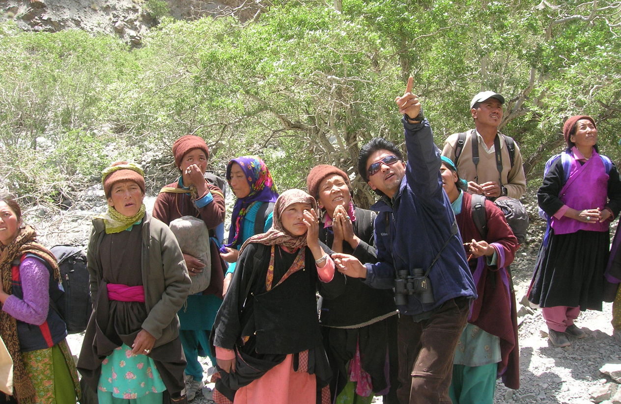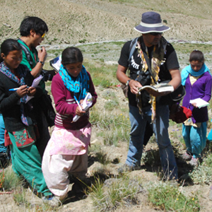 Although it is important to educate children in order to secure the future of wild animals in Ladakh, educating the adult population is crucial for fulfilling immediate conservation needs. To this end, we have started conducting workshops for village adults, who are taught about Ladakh’s flora and fauna. They are apprised of the status, distribution and density of various wild animals. More importantly, they are taught about the ecosystem dynamics and how the extinction of a keystone species like the snow leopard will affect the entire ecosystem. Another important aspect of these workshops is the hands-on training in basic wildlife surveys. Following the workshops, we invite villagers to join us in wildlife surveys and camera trapping, especially in remote and inaccessible places.